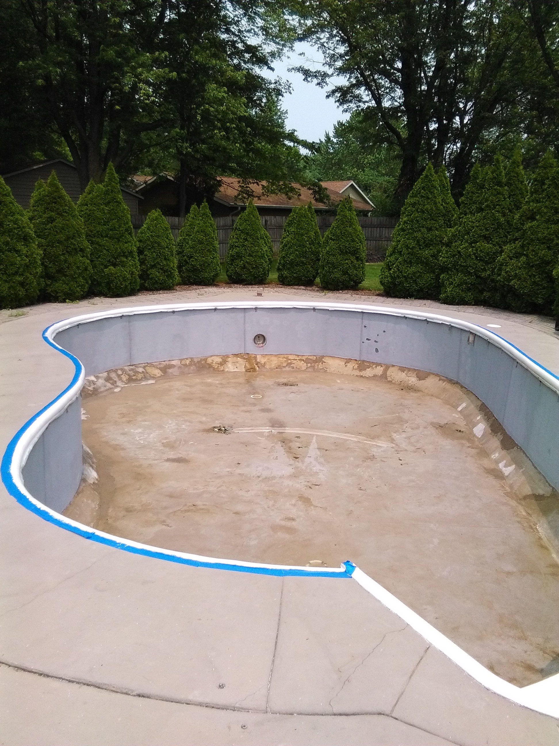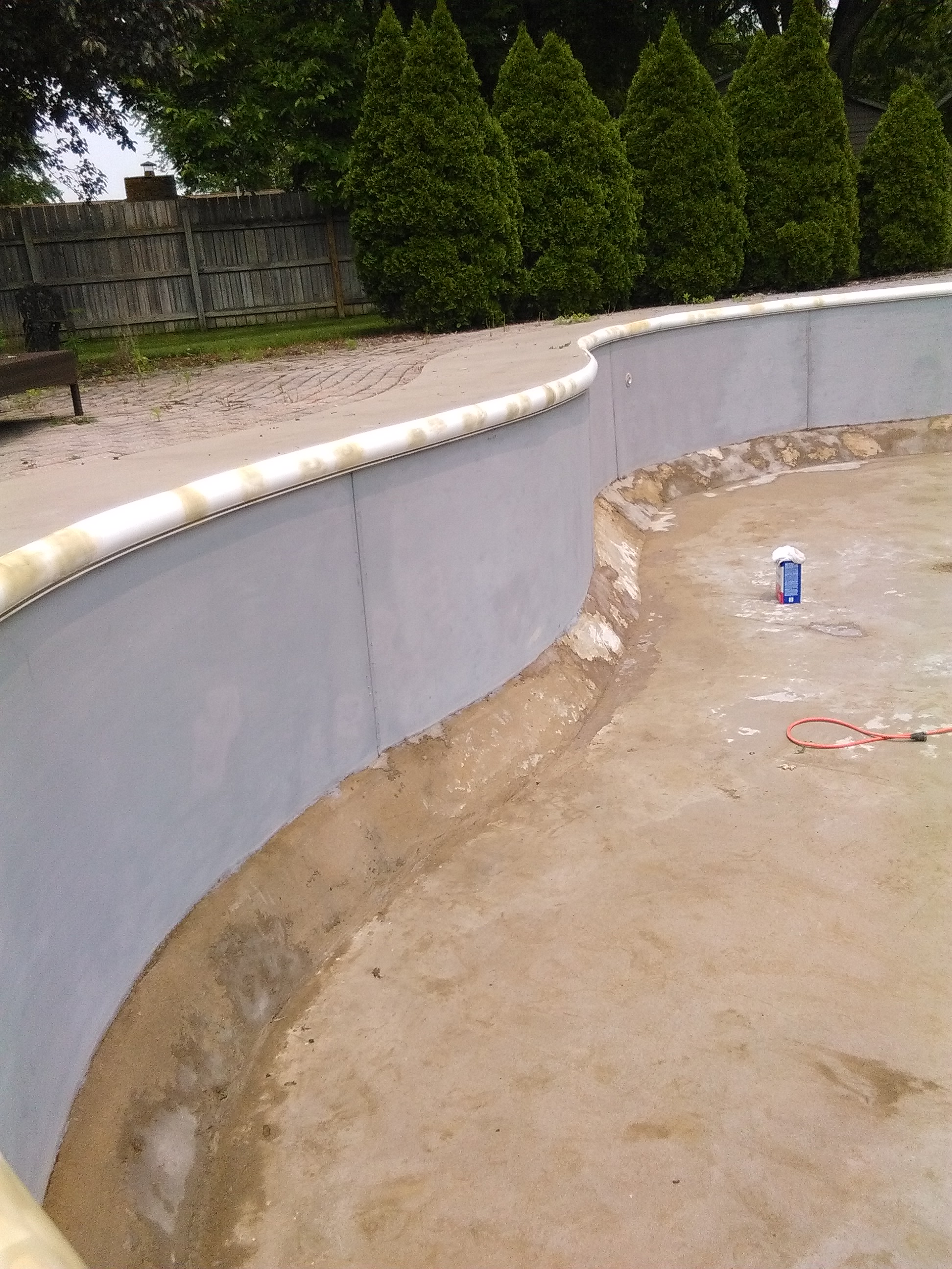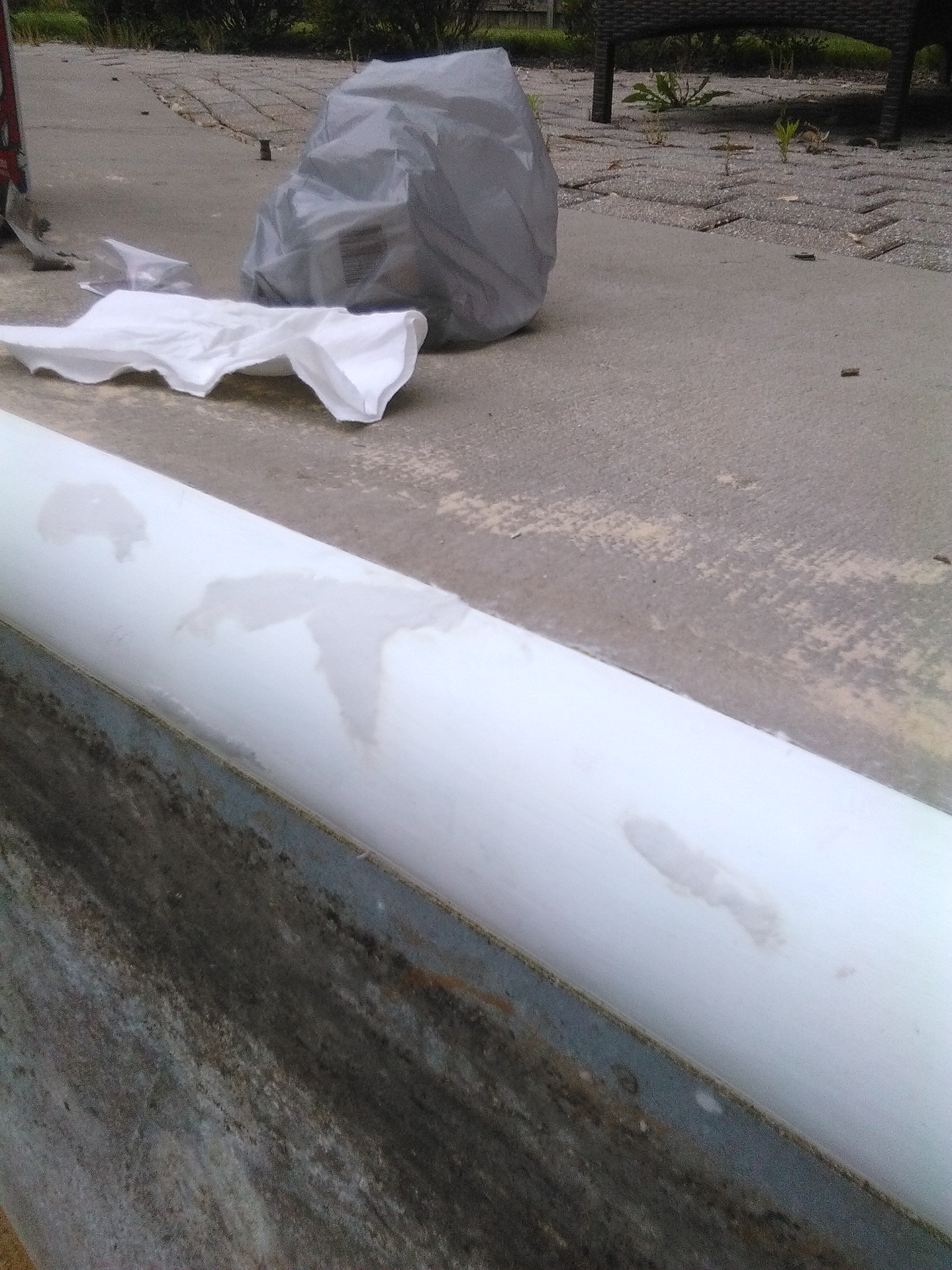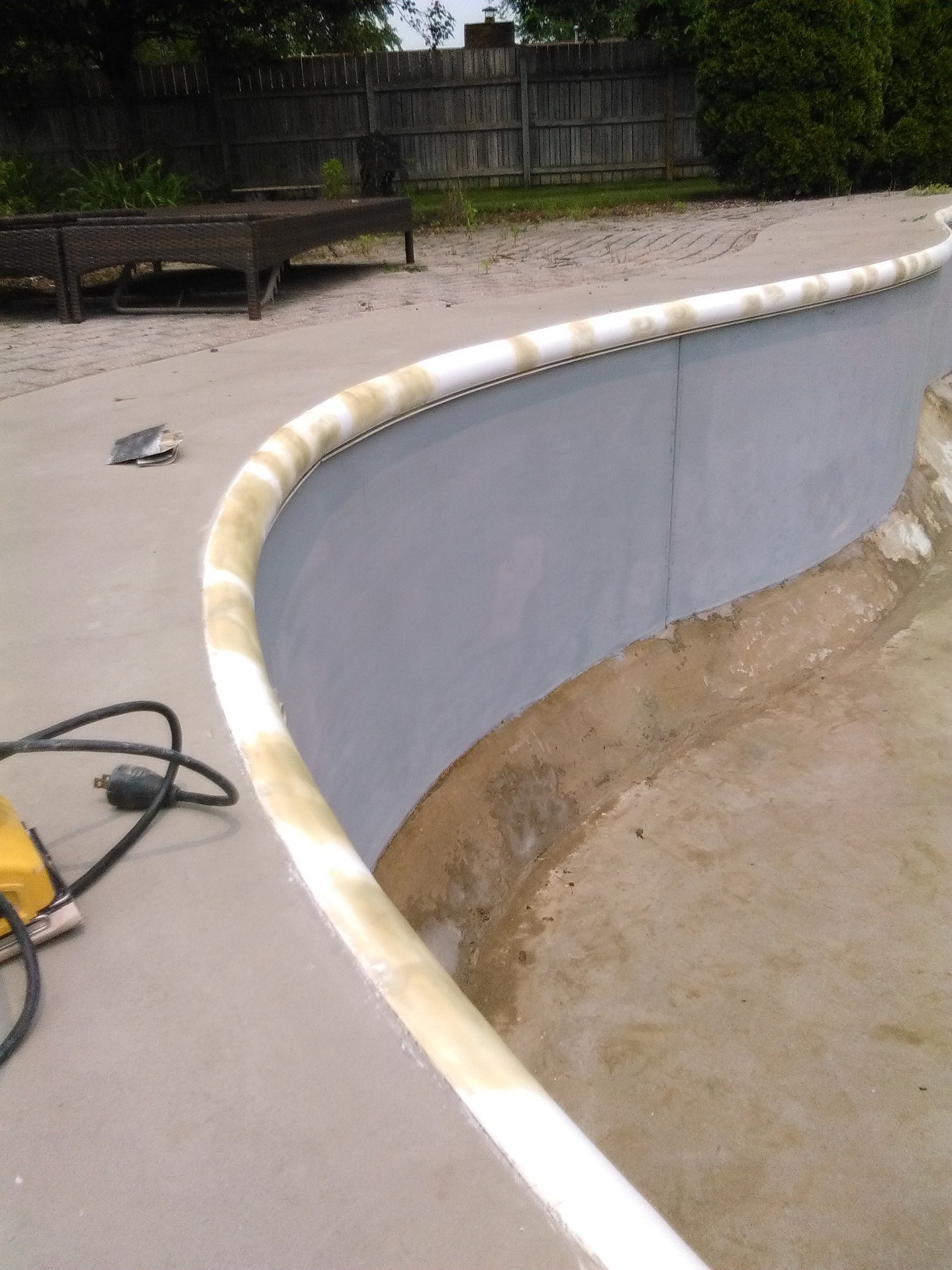Have you come across pools with cracked coping? This pool was built in the 90’s. The white plastic coping had gone through many years of freeze and thaw causing it to bulge & crack.