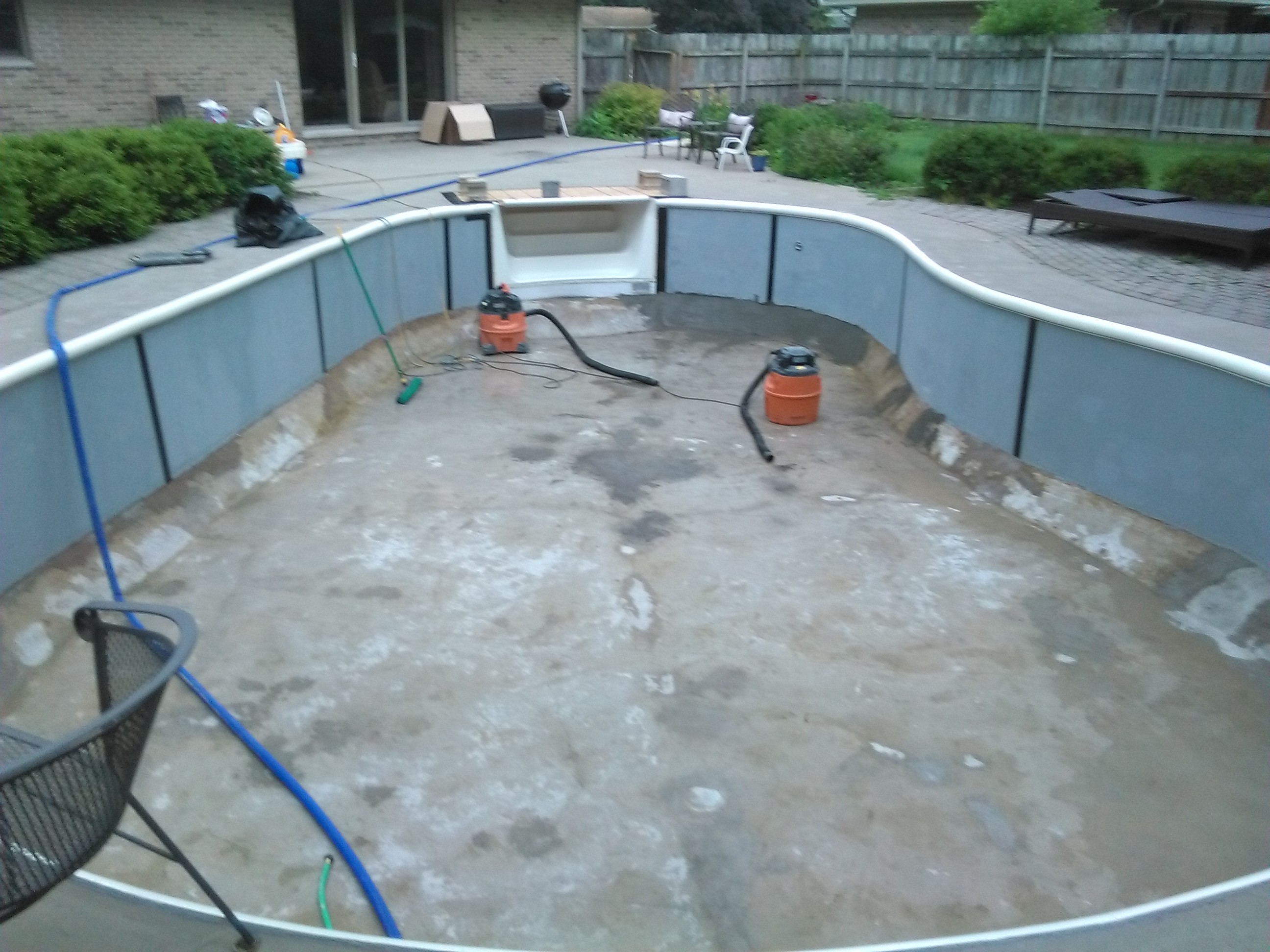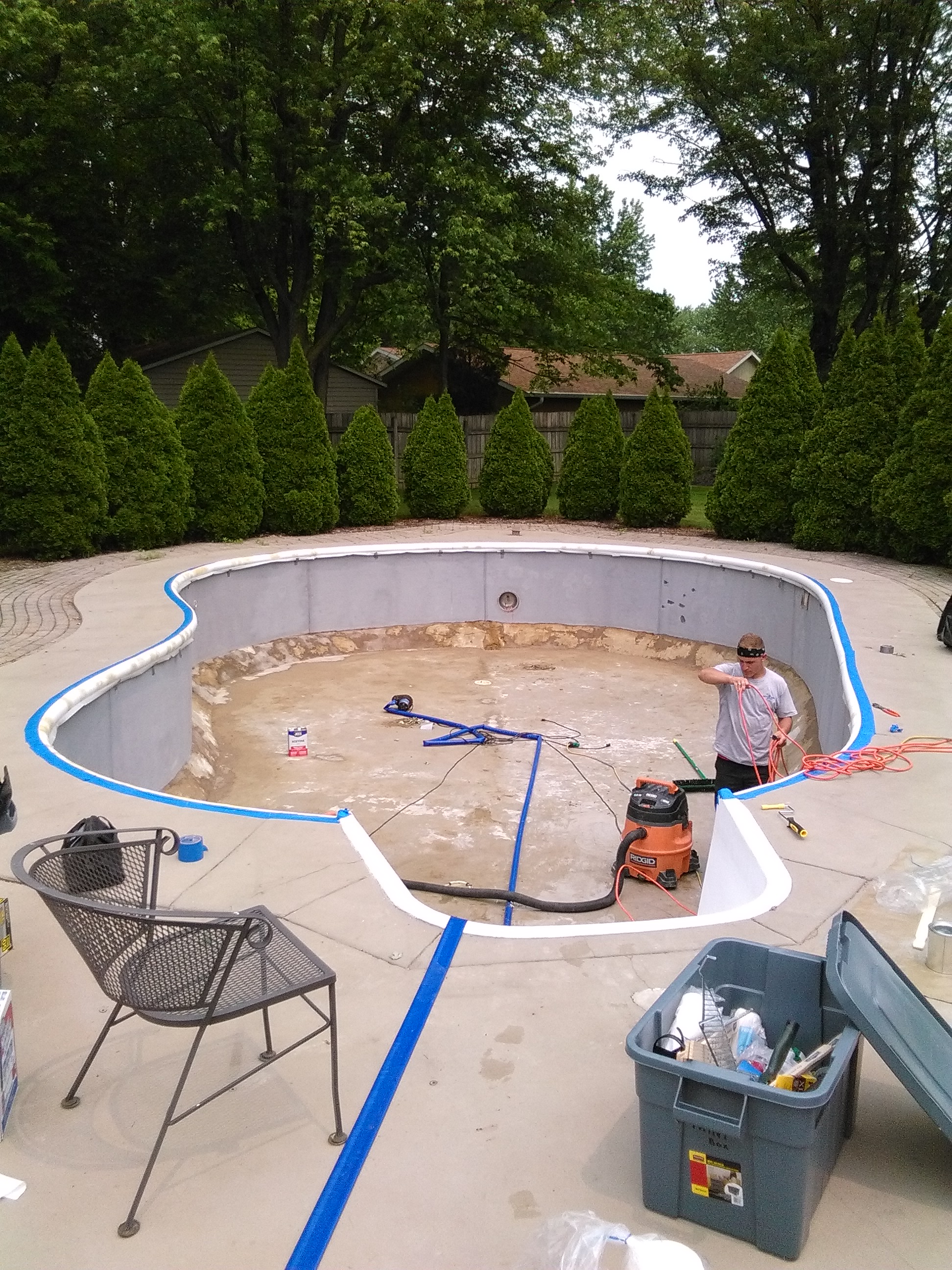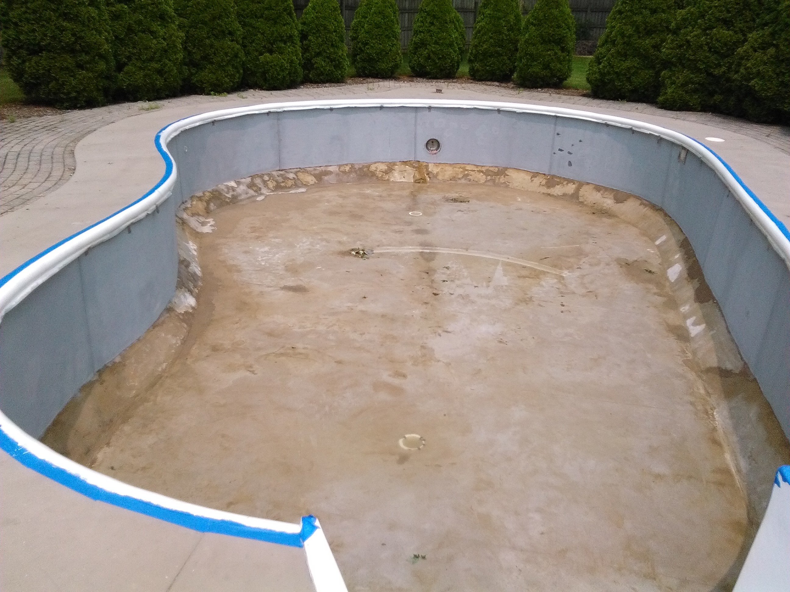 This pool was being renovated for a liner replacement and walk in stair repair. The coping repair was just a small part of the overall job. I have added more pictures below..