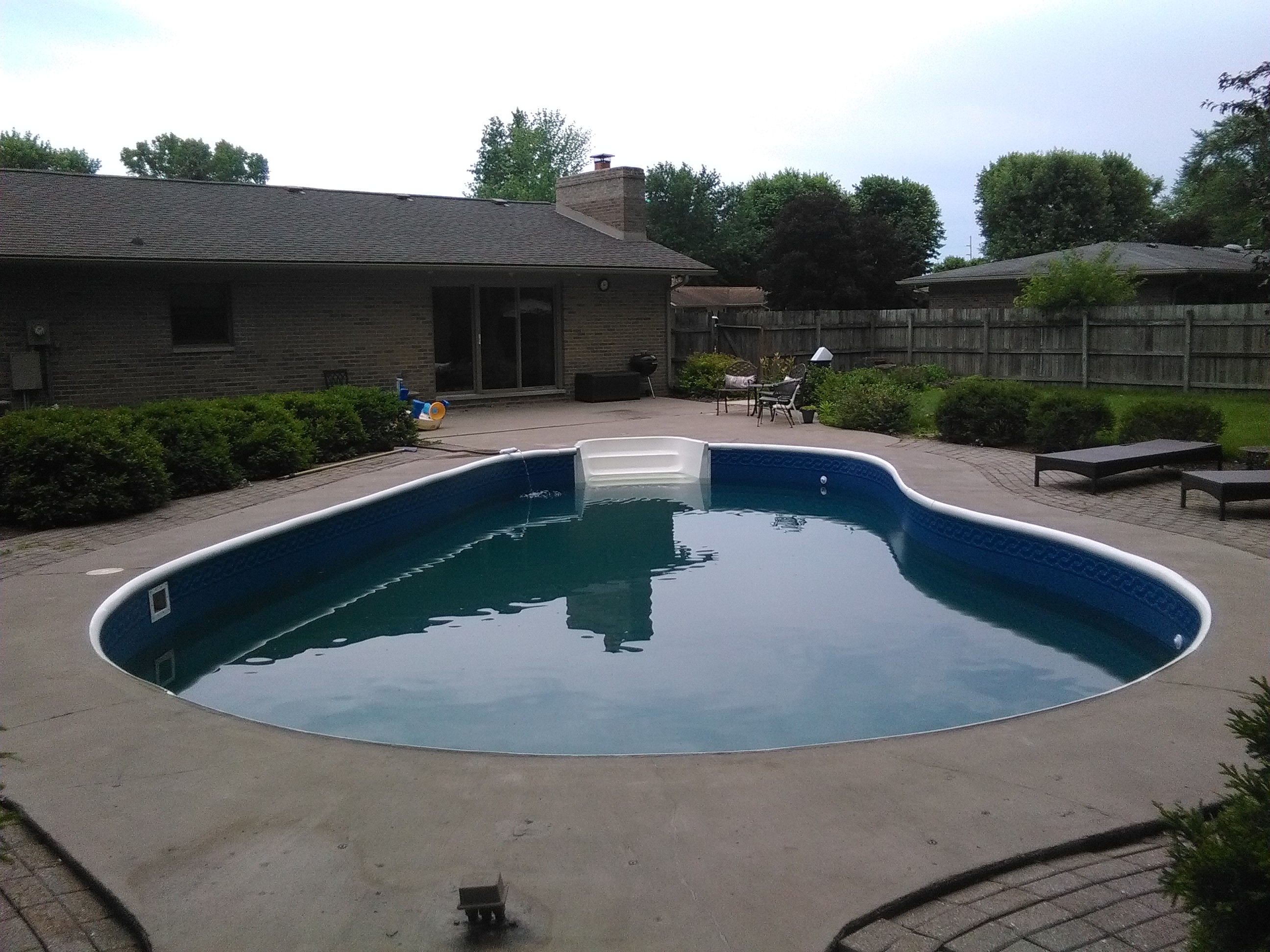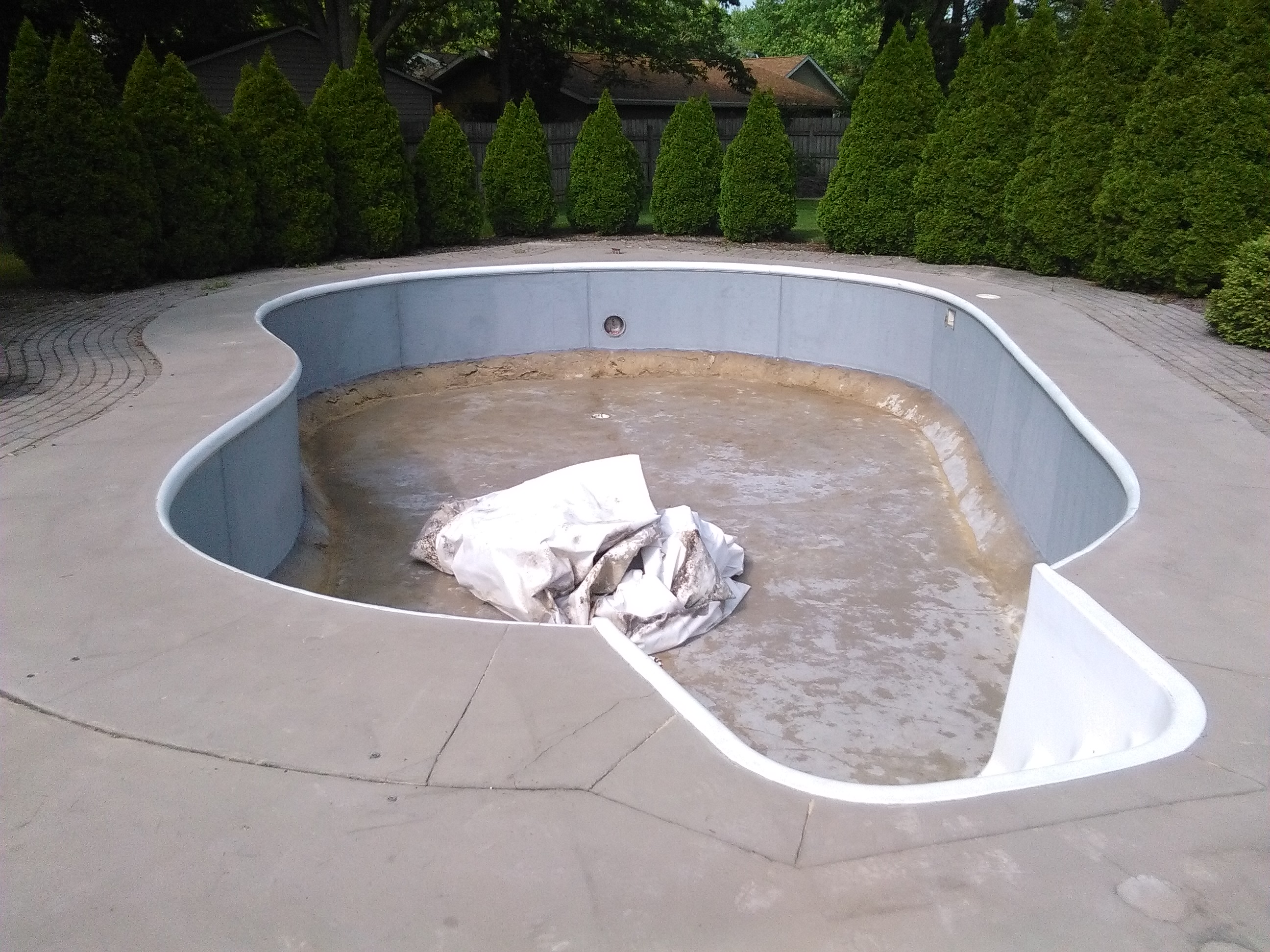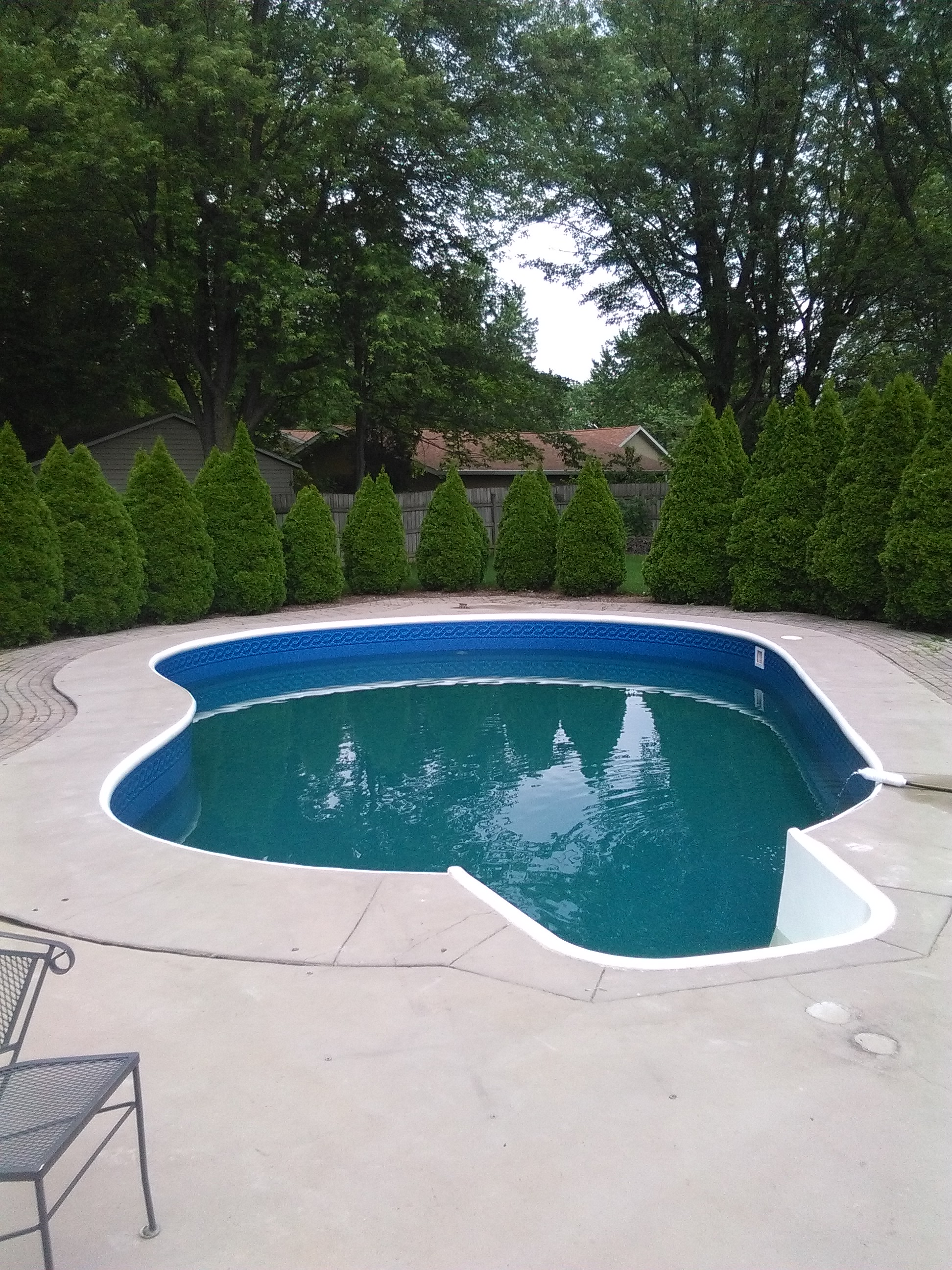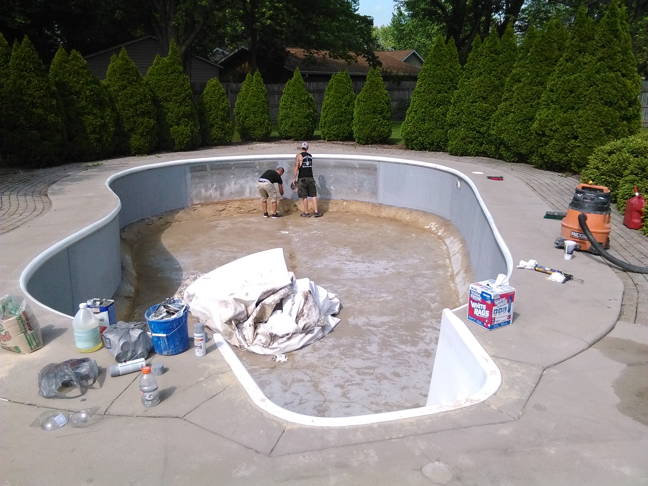 This pool was being renovated for a liner replacement and walk in stair repair. The coping repair was just a small part of the overall job. I have added more pictures below..