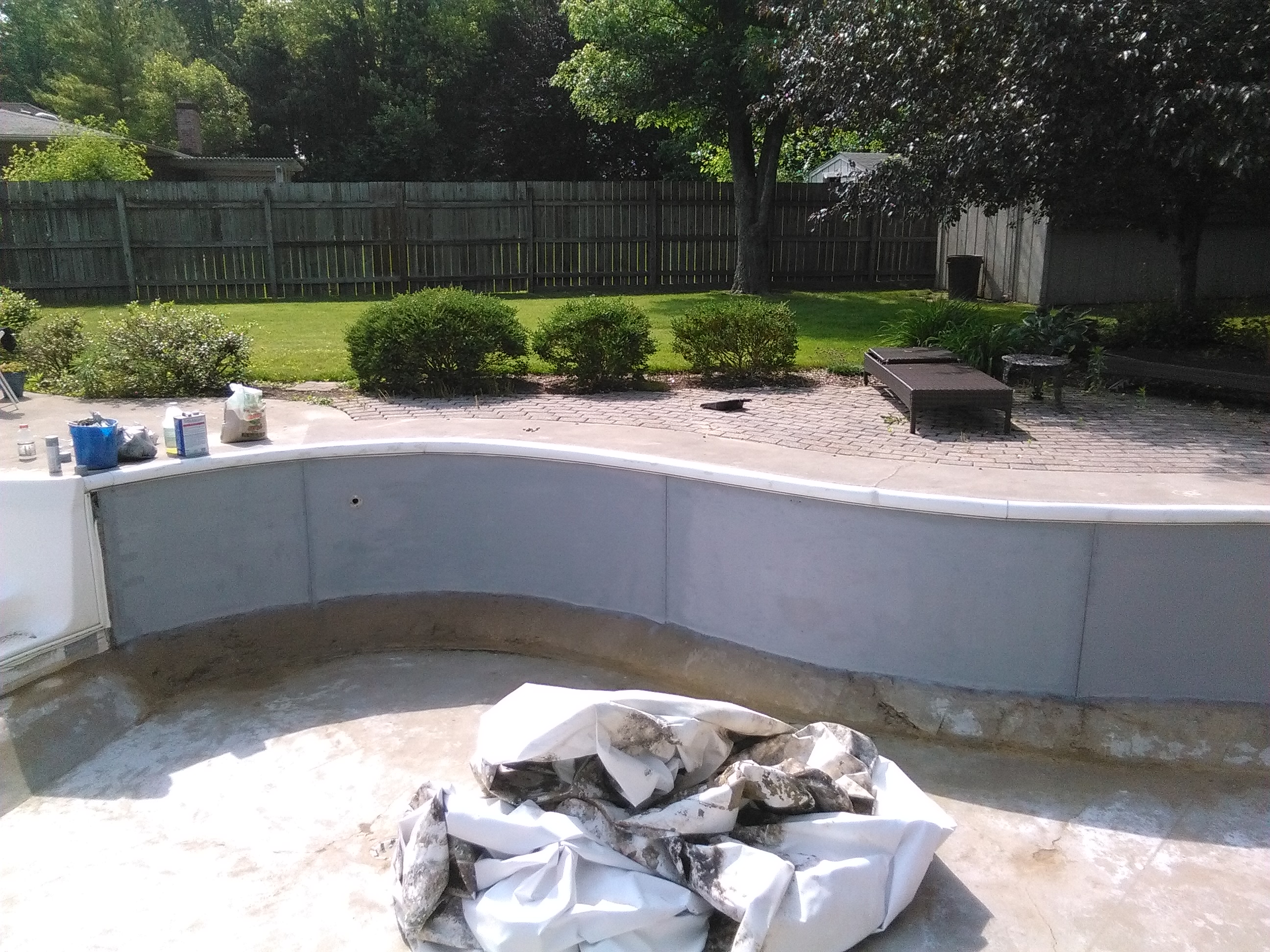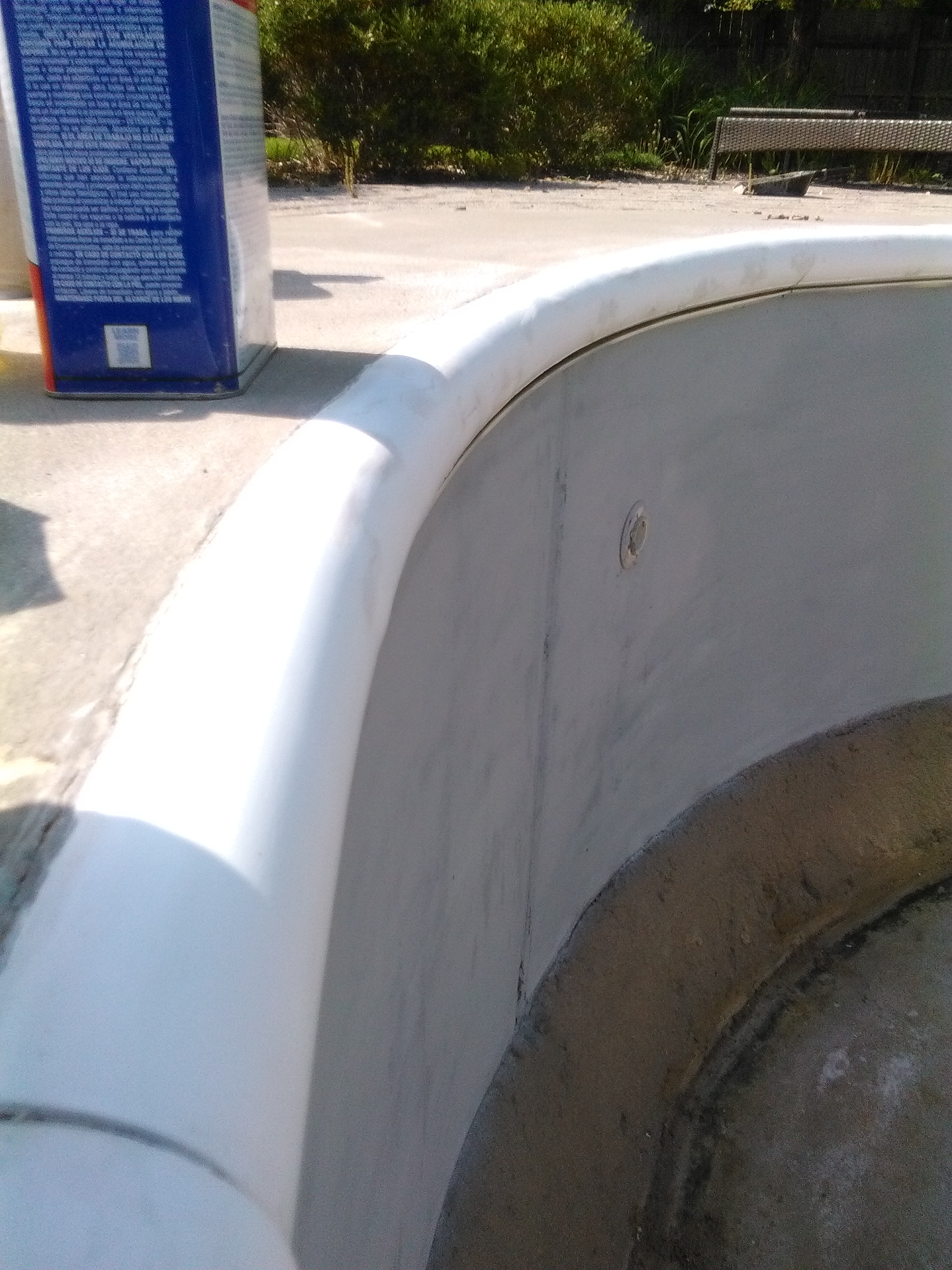 After cleaning the coping we coated the coping with a two part epoxy pool paint making the coping look like brand new once again.
